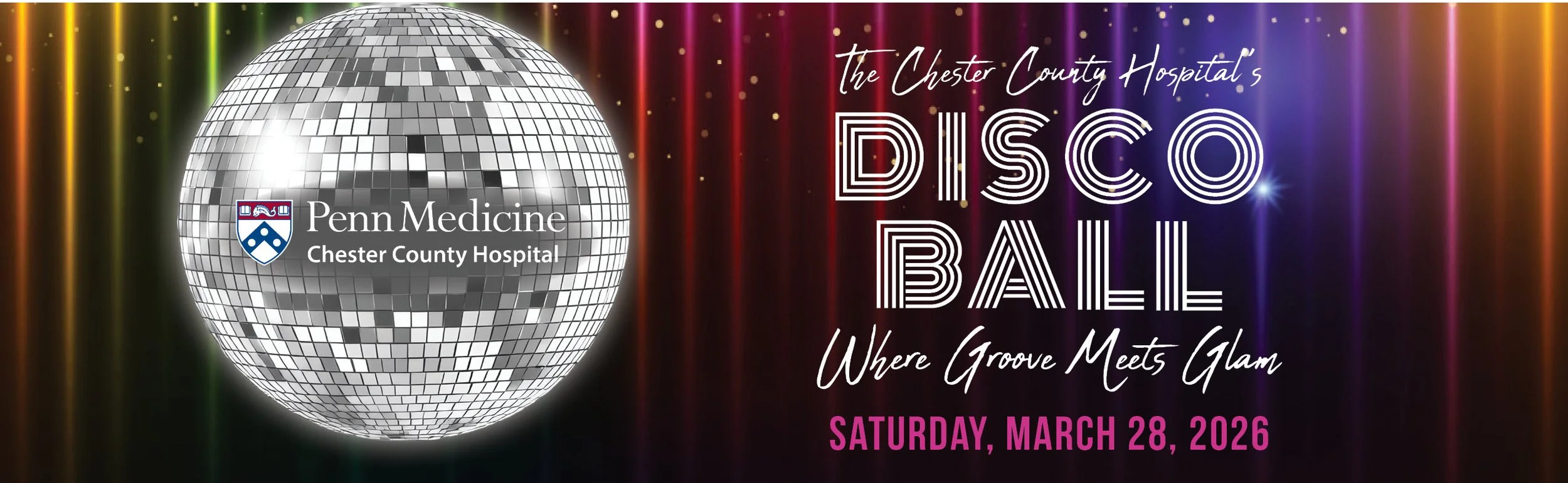 Join us for a fabulous evening of delicious cuisine, cocktails, and dancing at The Chester County Hospital’s “Disco Ball, Where Groove Meets Glam!” Your support of the Disco Ball at Longwood Gardens allows us to increase the number of lives we touch in our Community through our Neonatal Intensive Care Unit, Abramson Cancer Center, Emergency Department, Operating Suites, Cardiovascular Program, and so much more.